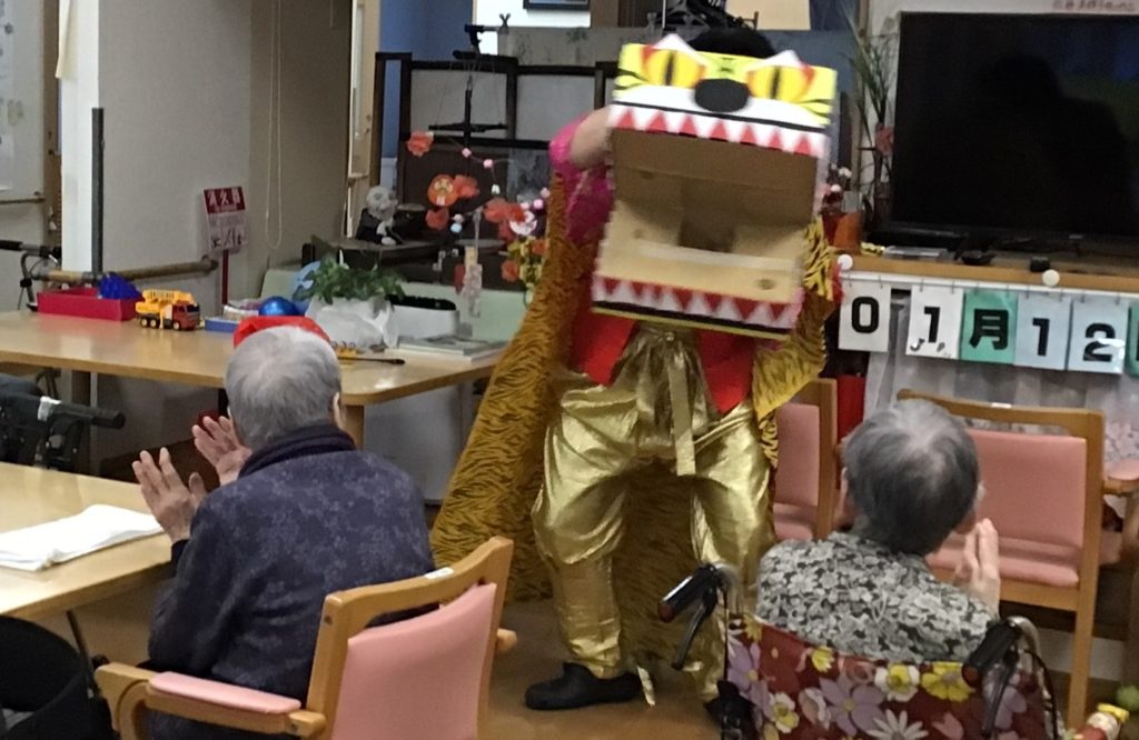 明けましておめでとうございます。グループホーム四季の郷では1月12日に小正月の行事で虎舞、大黒舞を職員が舞ました。