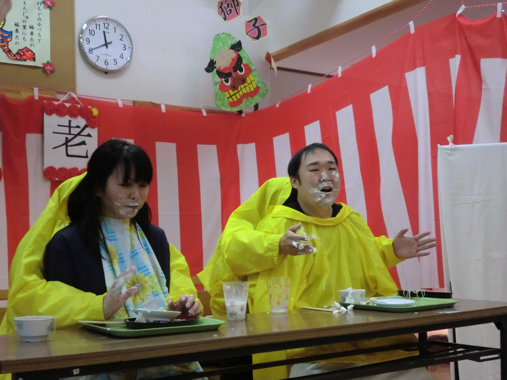 お昼は、ご馳走を食べました。皆さん良い笑顔でした(*^_^*)