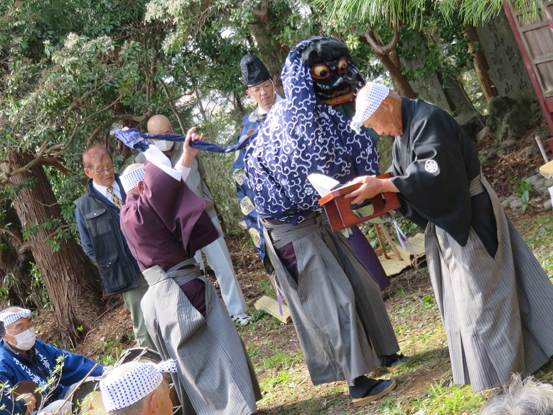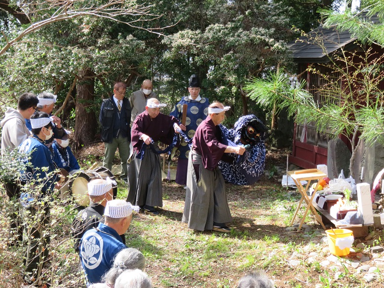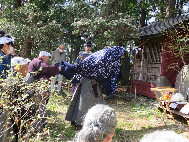 毘沙門堂 火防祭 厳かに執り行われる !! 新着情報 2023.04.12 令和5年4月9日(日)、毘沙門堂(沢野)にて、春の火防祭が厳かに執り行われました。 諏訪神社宮司による祝詞奏上のあと管理関係者による玉串奉納、つづいてあらど神楽が奉納され、神の恵みに感謝と五穀豊穣・地域の安全・感染症の収束を祈願しました。 毘沙門堂境内には、立花八士踊の碑や立花念佛剣舞の石碑が建立されており、一見の価値ありです。