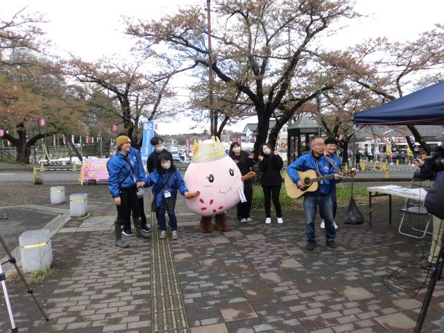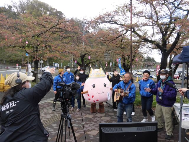 展勝地の桜と屋台を紹介し、最後は、参加者皆で歌を歌ってライブ中継を閉じました。