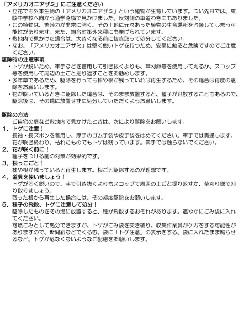 ザミ」が群生しています。とても危険です。成長途中です。今のうちに環境政