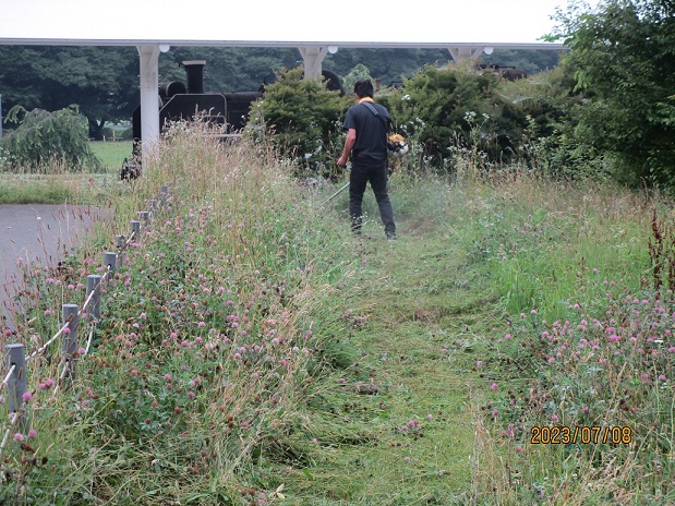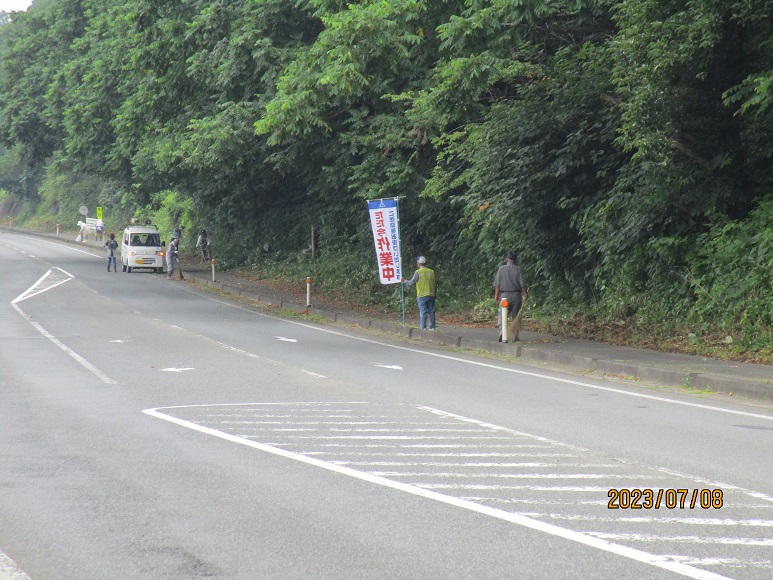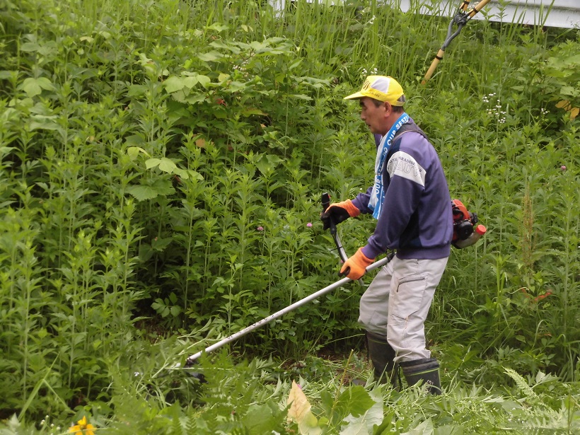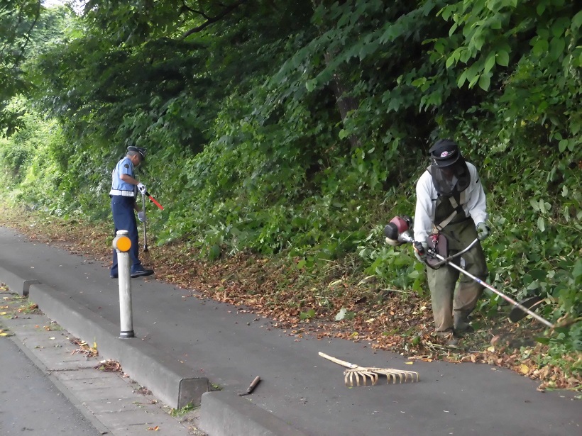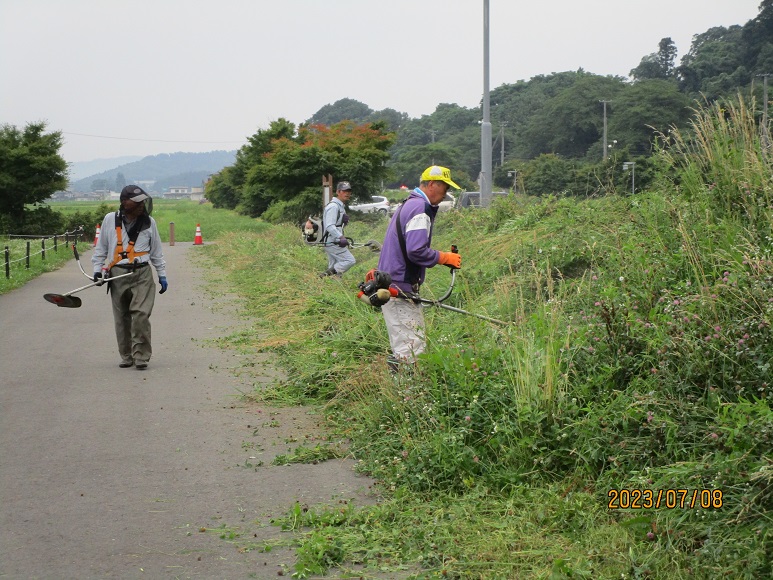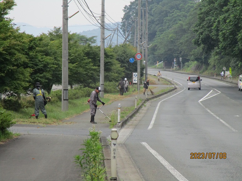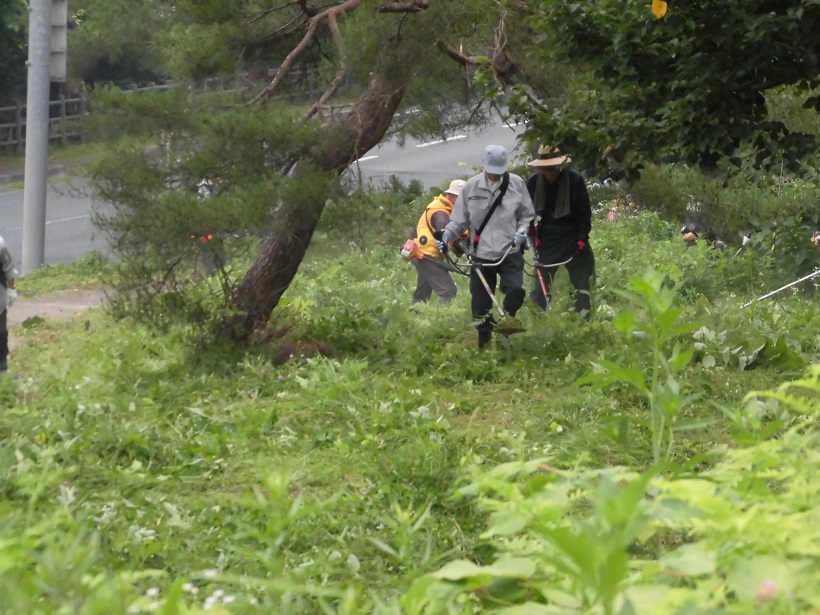 7月8日(土) 県道14号線沿い(東桜小交差点~男山入口)草刈り作業実施しました ! 新着情報 2023.07.10 早朝6時00分からの作業にも関わらず、総勢70名を超える参加を頂きました。雨が心配される中での作業でしたが何とか持ちこたえてもらい、わずか1時間半の作業でしたが、見違えるほどきれいになりました。 県道を通るドライバ-、ウォ-キング愛好者、展勝地を訪れる皆さんなどに、気持ちよく迎えられることと思います。 企業ボランティアや地区外のNPO職員、若い方々にもたくさん参加いただきました。 ご協力たいへんありがとうございました。