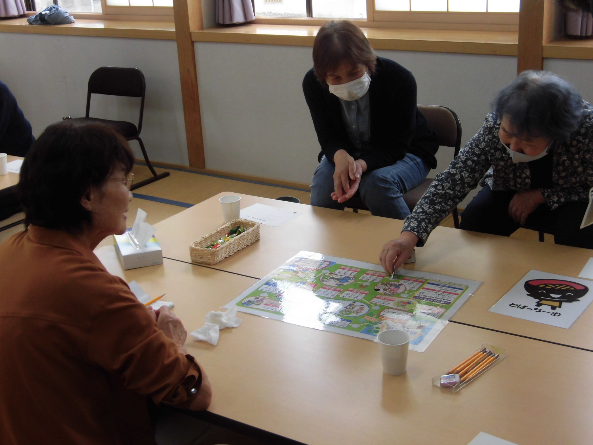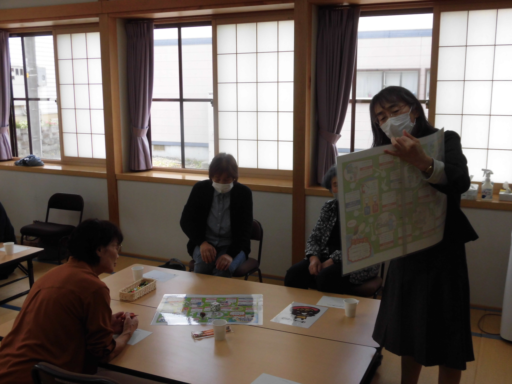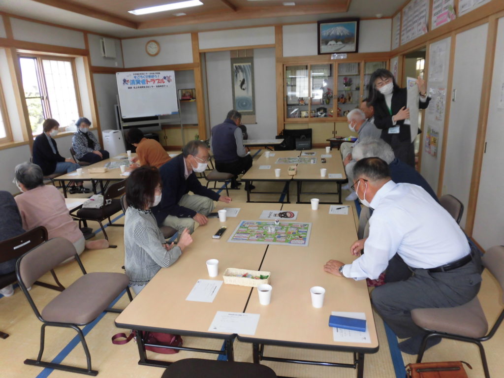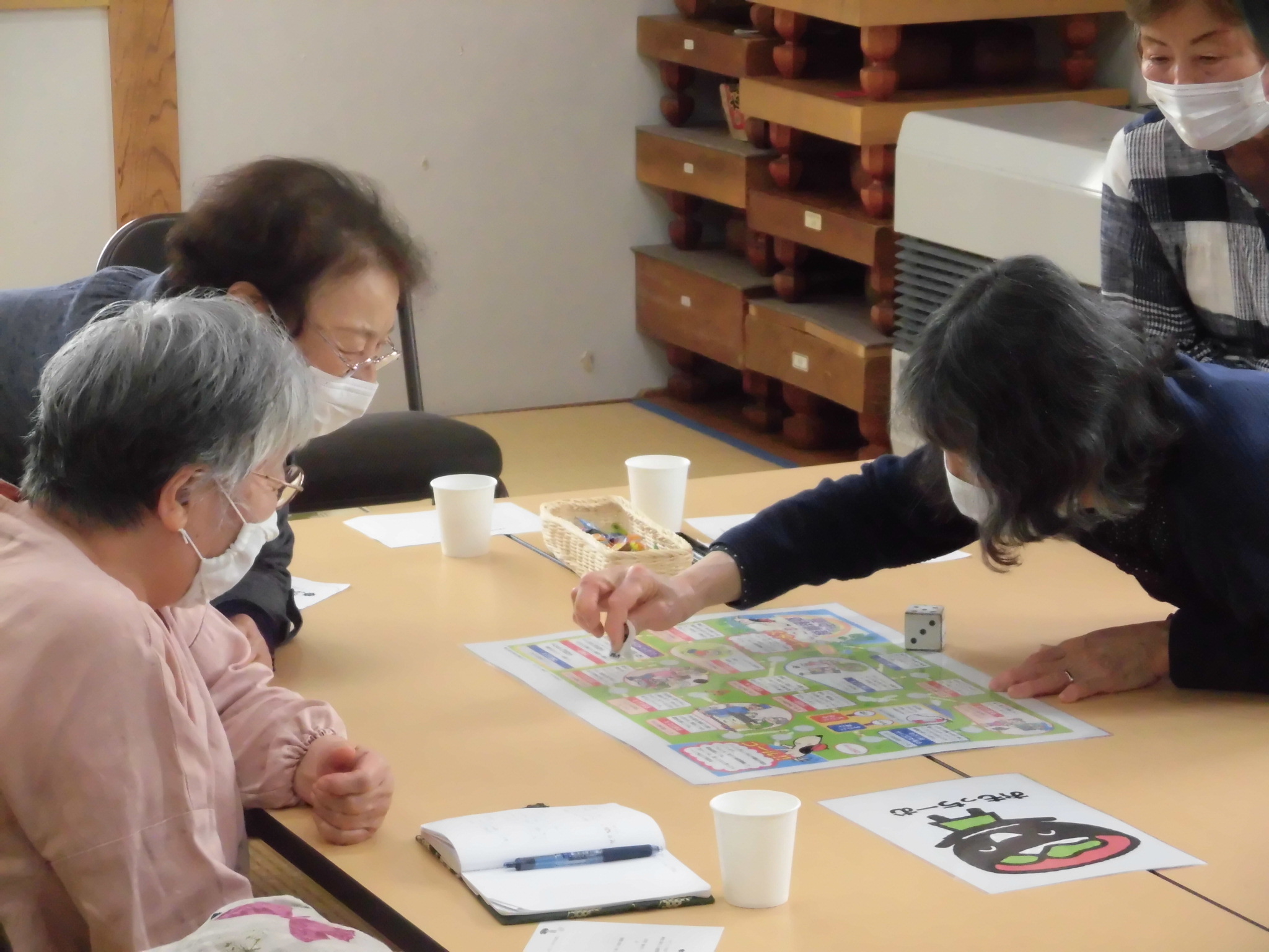 すごろくゲームでサイコロをふりコマを進めると、そこには「買え買え詐欺」「開運グッズ販売」「架空請求ハガキが届く」等があり、その手口や断り方、クーリングオフ等について具体的にお話いただきました。「また携帯電話などのSNSを使った詐欺が多く、高齢者だけではなく若い人でも注意が必要で、トラブルに巻き込まれないためにも消費者生活センターへまず相談して下さい。」と話されていました。