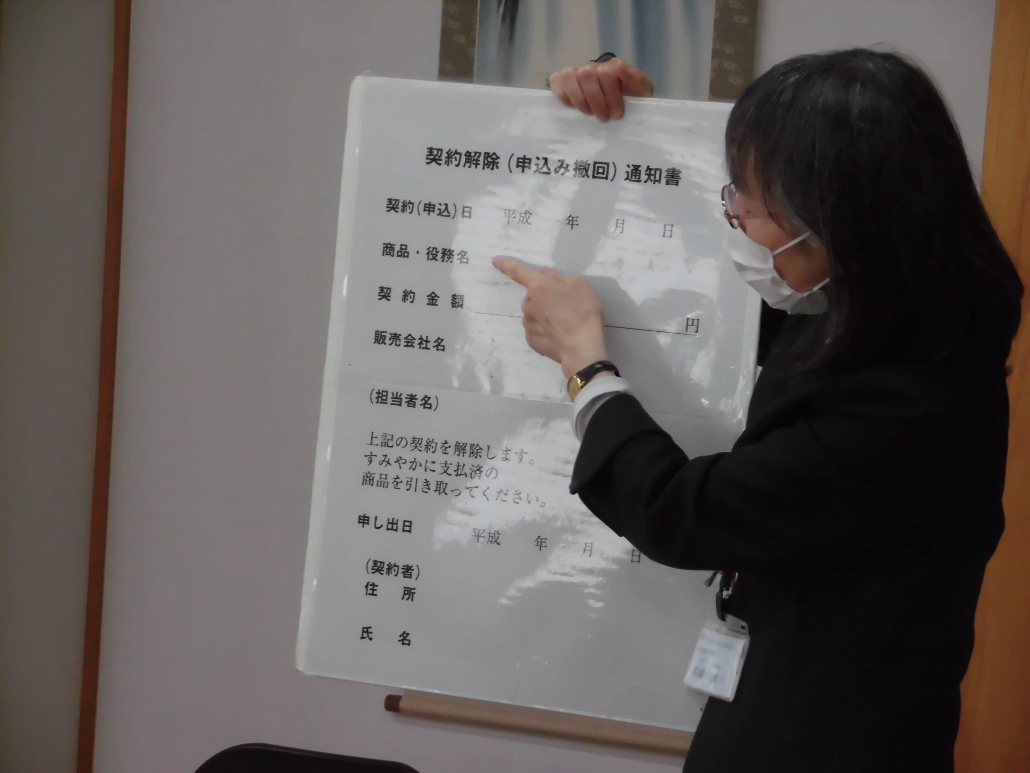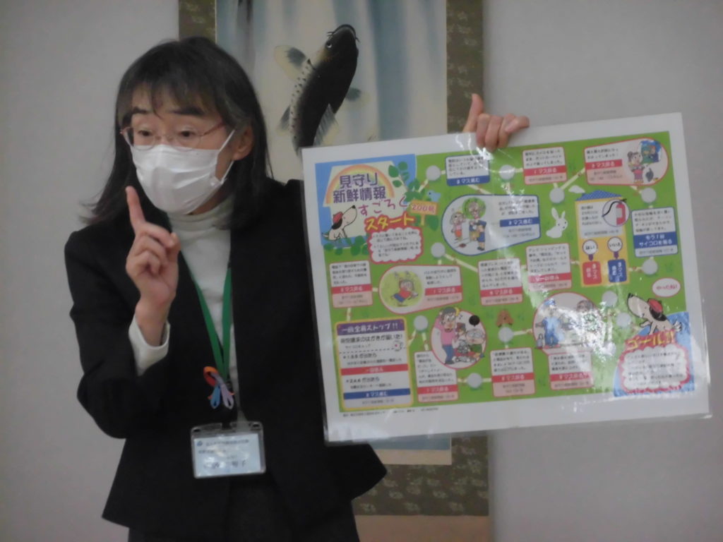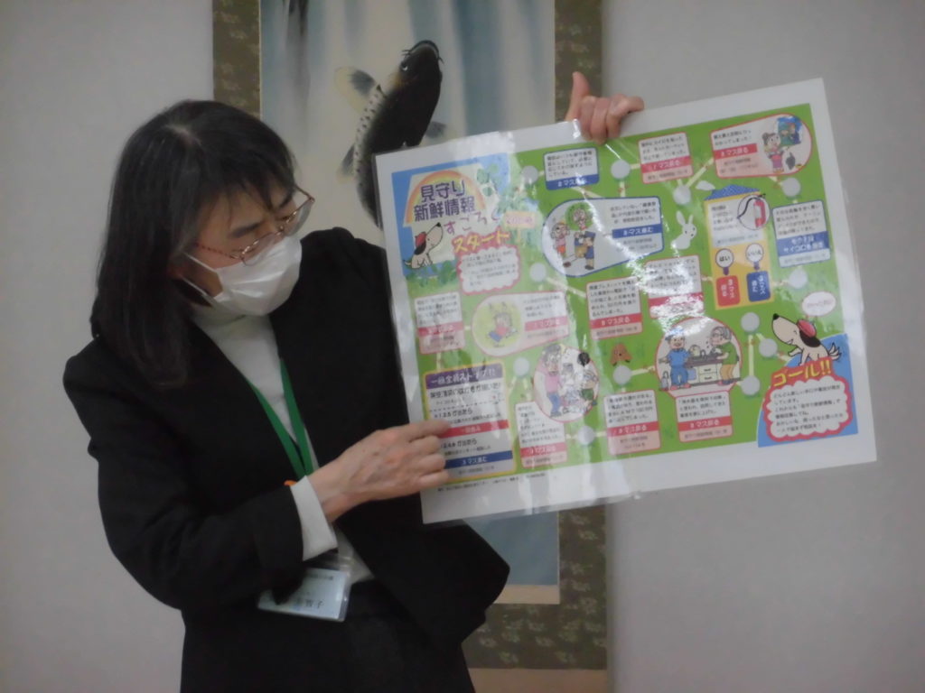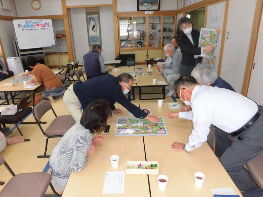 すごろくゲームでサイコロをふりコマを進めると、そこには「買え買え詐欺」「開運グッズ販売」「架空請求ハガキが届く」等があり、その手口や断り方、クーリングオフ等について具体的にお話いただきました。「また携帯電話などのSNSを使った詐欺が多く、高齢者だけではなく若い人でも注意が必要で、トラブルに巻き込まれないためにも消費者生活センターへまず相談して下さい。」と話されていました。