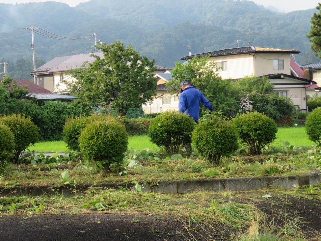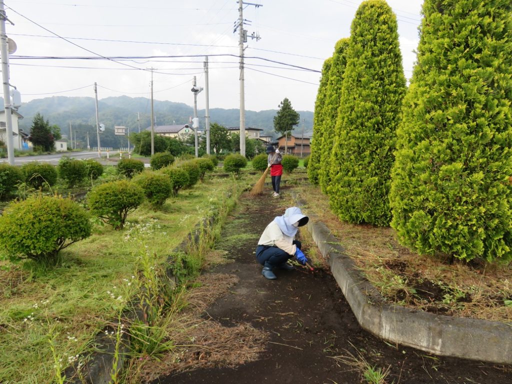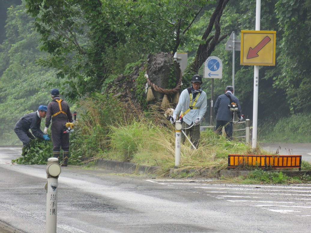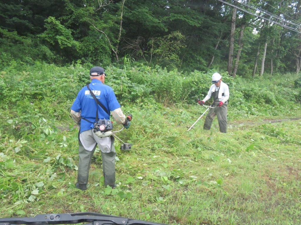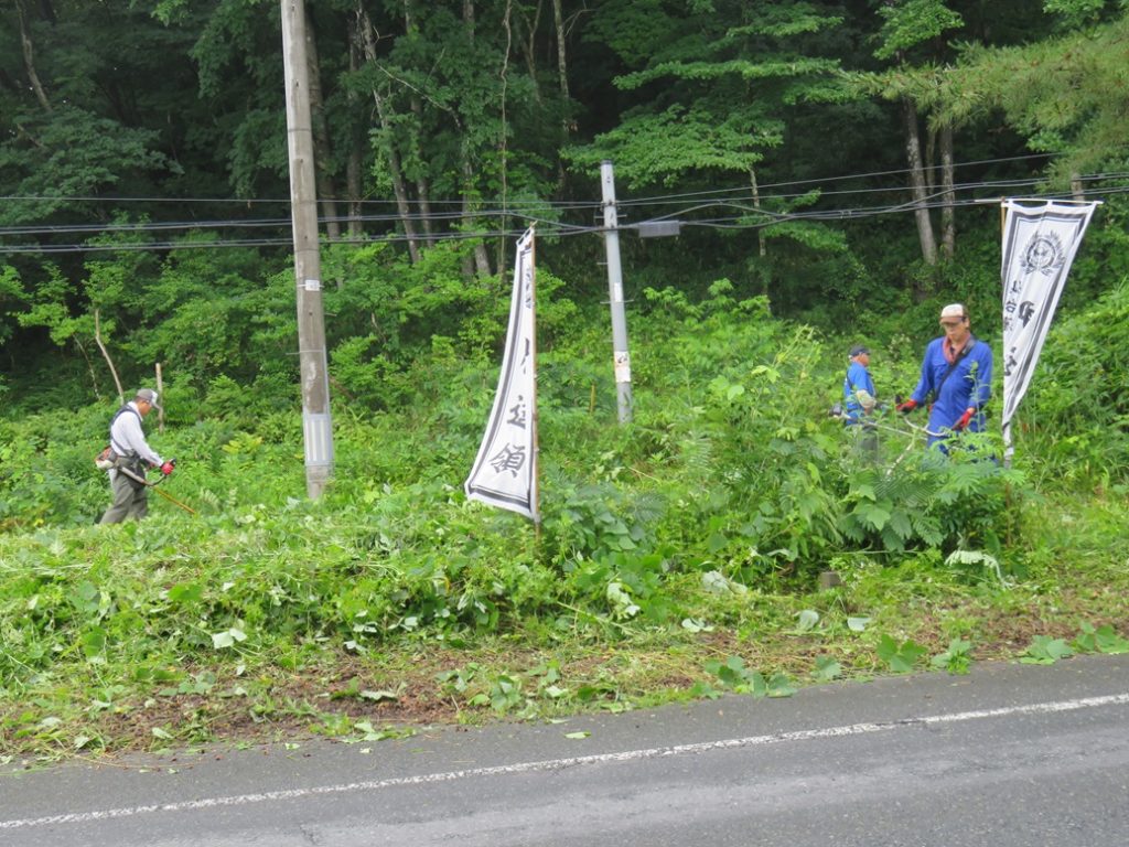 今回は、北交差点付近とさわやかトイレ周辺の2カ所の他にサトウハチロー記念館周囲も追加しての作業としましたので、草刈り後の掃除や草よせの人員が足りなかった。次回以降は人員確保に呼びかけ他考慮することとしたい。県道を通るドライバ-、ウォ-キング愛好者、展勝地を訪れる皆さんなどに、気持ちよく迎えられることと思います。