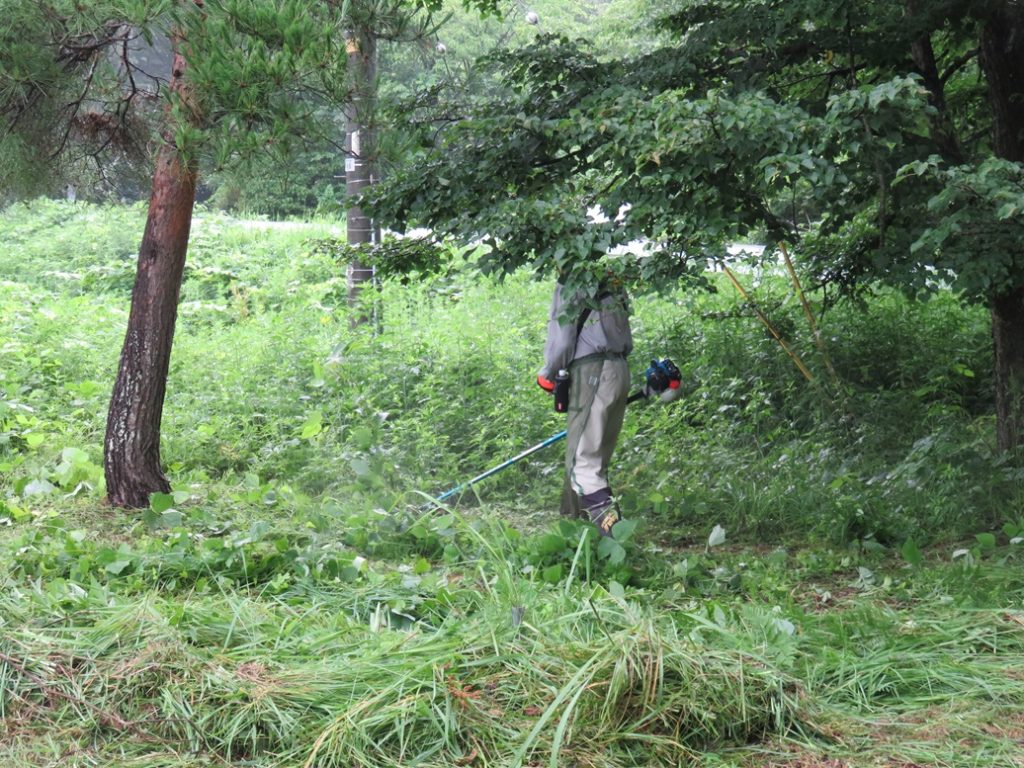 草木が人の背丈を超えている場所やツタが絡まっていたりしていて、力のいる作業となりました。わずか1時間半の作業でしたが、見違えるほどきれいになりました。
