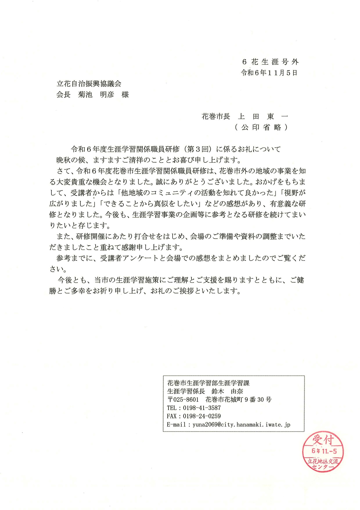 R6年10月10日(木) 花巻市生涯学習関係職員研修